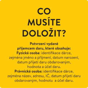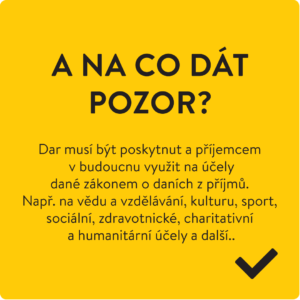 Dočasně zvýhodněné snížení daňového základu zakotvila v reakci na pandemii Covid-19 novela zákona o daních z příjmu. Pokud daruje právnická osoba nebo živnostník, uplatní daňový odpis ve svém daňovém přiznání za daný rok. Zaměstnanci by měli dodat potvrzení o poskytnutých darech ve zdaněném roce své mzdové účtárně. Dary mohou být ze zákona poskytnuty například na kulturu, sociální oblast, humanitární účely, životní prostředí, sport, nebo charitu.